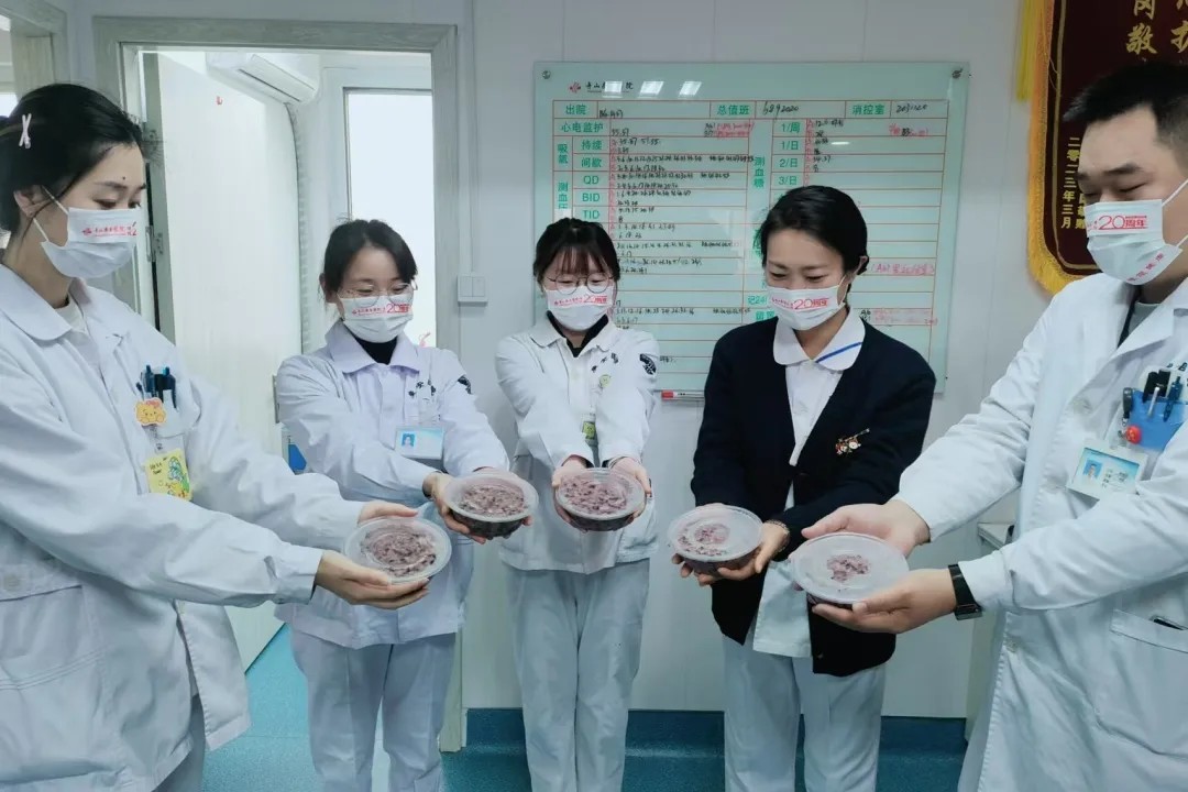 隨后,醫(yī)院工作人員將這些熱氣騰騰的臘八粥分裝打包,由工作人員送往各個(gè)病房。每到一處,工作人員們都會(huì)將臘八粥遞到病人手中,并送上節(jié)日的問候與祝福。病人和家屬們紛紛表示,在這樣特殊的節(jié)日里,醫(yī)院還能想到他們,讓他們感受到了家的溫暖。