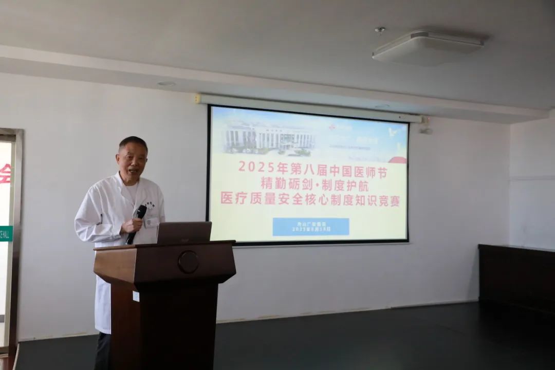 2025年8月19日,我院開展慶祝第八個中國醫(yī)師節(jié)系列活動,通過重溫《中國醫(yī)師宣言》,精勤礪劍·制度護航——醫(yī)療質量安全核心制度知識競賽活動,進一步提高診療技術水平、服務質量和實踐操作能力,確保醫(yī)療安全,激發(fā)醫(yī)務工作者從業(yè)信念,學習制度、遵守制度、捍衛(wèi)制度的自覺性,推動我院醫(yī)療安全的高質量發(fā)展。