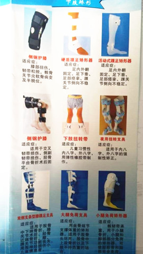 不同部位的矯形器對(duì)應(yīng)不同的適應(yīng)癥,如動(dòng)態(tài)手矯形器的適用于橈神經(jīng)損傷導(dǎo)致伸肌功能癱瘓,可被動(dòng)伸展腕關(guān)節(jié);肘關(guān)節(jié)固定支架適用于肘關(guān)節(jié)攣縮,不穩(wěn)定,術(shù)后固定,肘不穩(wěn)定性骨折;