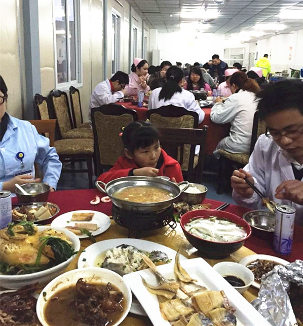 醫(yī)院貼心的為每個住院病人及醫(yī)護人員發(fā)了餐券。除夕夜,整個食堂一陣陣的歡聲笑語沖淡了大家對不能回家過年的失落與孤獨。