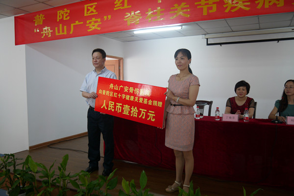 2013年6月30日上午,普陀區(qū)紅十字會與我院簽訂了普陀區(qū)紅十字健康關(guān)愛基金—“舟山廣安”脊柱關(guān)節(jié)疾病關(guān)愛項目協(xié)議。我院分兩年注入基金,減輕脊柱關(guān)節(jié)疾病患者的經(jīng)濟(jì)負(fù)擔(dān),首批基金達(dá)10萬元。