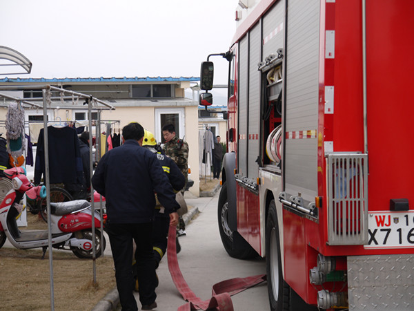 消防員做好開展消防演習(xí)的準(zhǔn)備