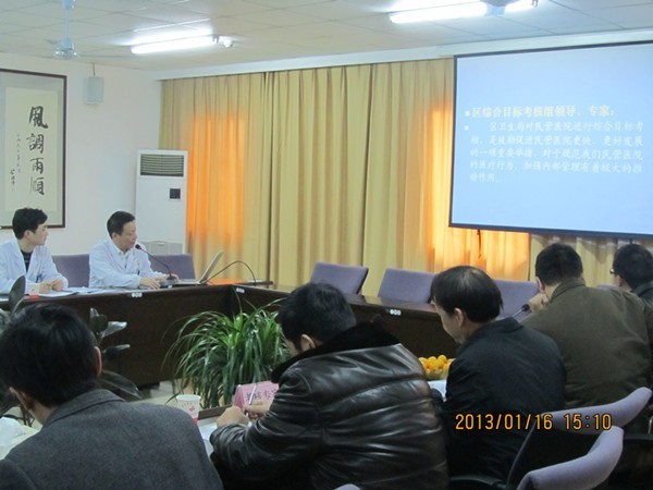 2013年1月16日下午,普陀區(qū)衛(wèi)生局綜合目標(biāo)考核組領(lǐng)導(dǎo)對我院進(jìn)行綜合目標(biāo)考核的檢查。本次檢查主要針對醫(yī)院各個(gè)職能科室。郭維杰院長還對醫(yī)院的情況以及2012年度醫(yī)院主要業(yè)績進(jìn)行了工作匯報(bào)。最終我院順利地通過了此次檢查,不過,在檢查中,也發(fā)現(xiàn)了我院仍存在一些問題,通過專家組的點(diǎn)評和指導(dǎo),相信我院一定能改進(jìn)這些問題,發(fā)展的越來越好。