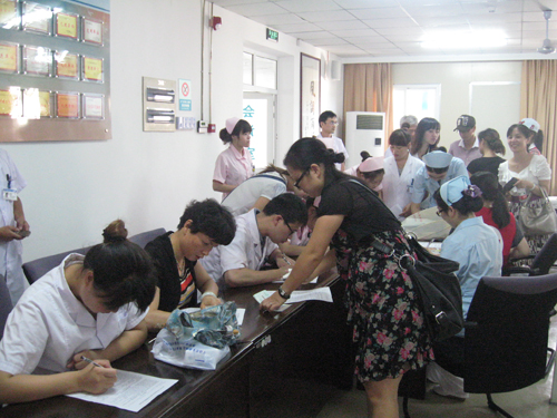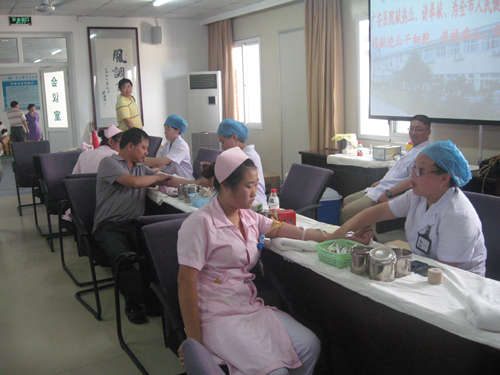 血站血情告急,A型血和O型血僅有50個單位,舟山廣安骨傷醫(yī)院一聽說這個情況,立即與市中心血站取得聯(lián)系,主動要求獻(xiàn)血。2012年7月30日下午兩點(diǎn),組織醫(yī)院工作人員在醫(yī)院會議室進(jìn)行獻(xiàn)血。參加此次獻(xiàn)血活動的共有42名醫(yī)務(wù)人員,到下午四點(diǎn)半,42名醫(yī)務(wù)人員共獻(xiàn)血10700毫升,其中16人獻(xiàn)血300毫升以上。另有8名醫(yī)院人員成為了捐獻(xiàn)造血干細(xì)胞志愿者。