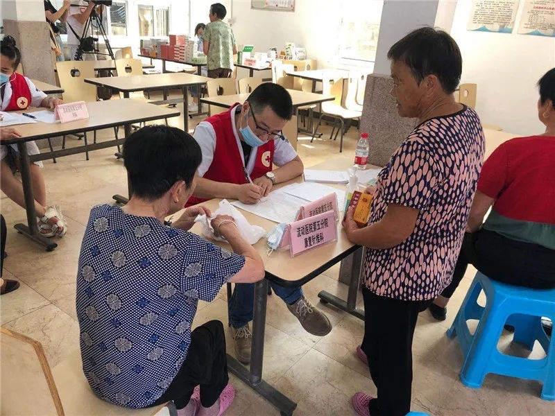 在結(jié)束對(duì)大橋一線建設(shè)者的健康慰問后,8月22日,舟山廣安醫(yī)院義診團(tuán)隊(duì)再次出發(fā),來到朱家尖南沙社區(qū)東沙老年公寓,為當(dāng)?shù)鼐用耖_展免費(fèi)義診送藥下鄉(xiāng)活動(dòng)。