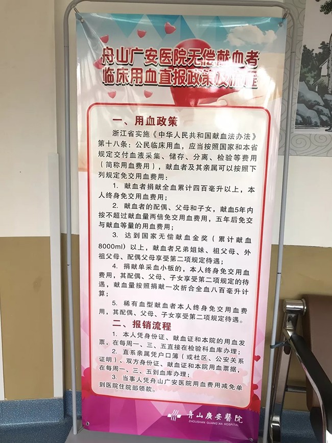 無(wú)償獻(xiàn)血者免費(fèi)用血報(bào)賬不需要再東奔西跑,在就診醫(yī)院即可一站式報(bào)銷,這一政策在舟山廣安醫(yī)院已不折不扣執(zhí)行了7年,到目前為止,廣安醫(yī)院依舊是全市唯一一家實(shí)行血庫(kù)直報(bào)業(yè)務(wù)的民營(yíng)醫(yī)院。