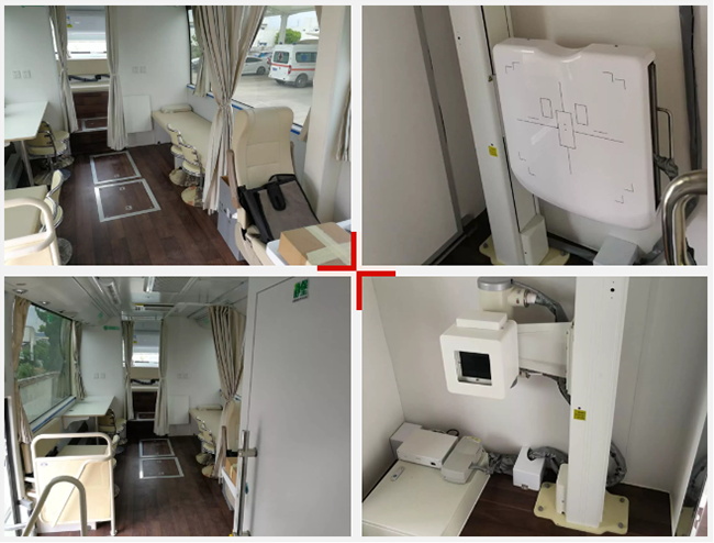 車內配備車載數(shù)字DR、便捷式彩超、心電圖機、電測聽等先進設備;設有獨立舒適的B超檢查區(qū)、心電檢查區(qū)、采血區(qū)和先進的影像工作站等,車上配備冷暖空調,流動體檢車上內部布局合理,保證了私密性。