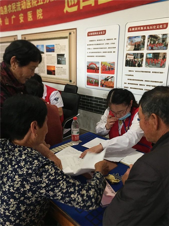 “知道廣安醫(yī)院的醫(yī)生要來坐診,我早上六點(diǎn)多就到這里啦!”“醫(yī)生啊,我腰痛已經(jīng)快一個(gè)月了,是不是腰間盤突出了???”“醫(yī)生,早上起來總是頭暈眼花,這個(gè)是不是血壓不好?” 義診服務(wù)隊(duì)的醫(yī)生們,耐心對(duì)待每一位老人,量血壓、測心率,專心回答每一個(gè)問題,認(rèn)真指導(dǎo)日常用藥及注意事項(xiàng)。