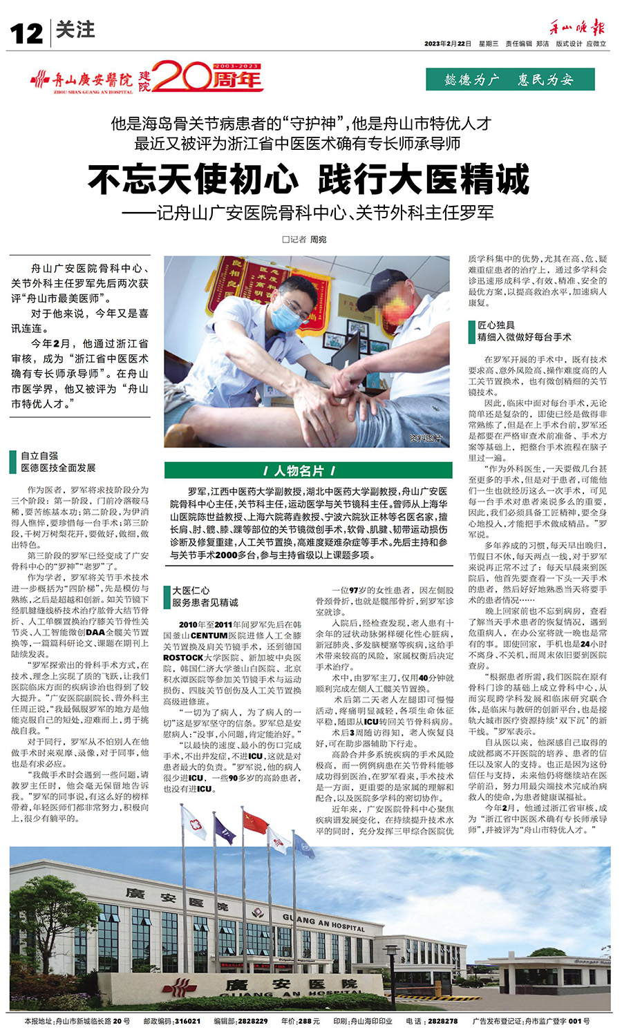不忘天使初心 踐行大醫(yī)精誠(chéng)——記舟山廣安醫(yī)院骨科中心、關(guān)節(jié)外科主任羅軍