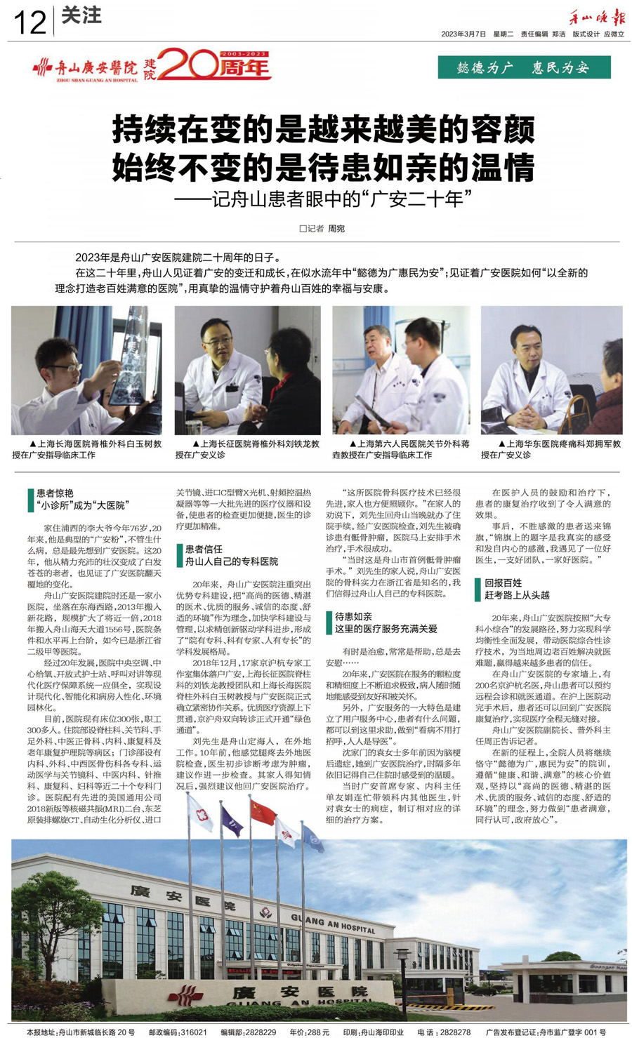 持續(xù)在變的是越來(lái)越美的容顏 始終不變的是待患如親的溫情——記舟山患者眼中的“廣安二十年”