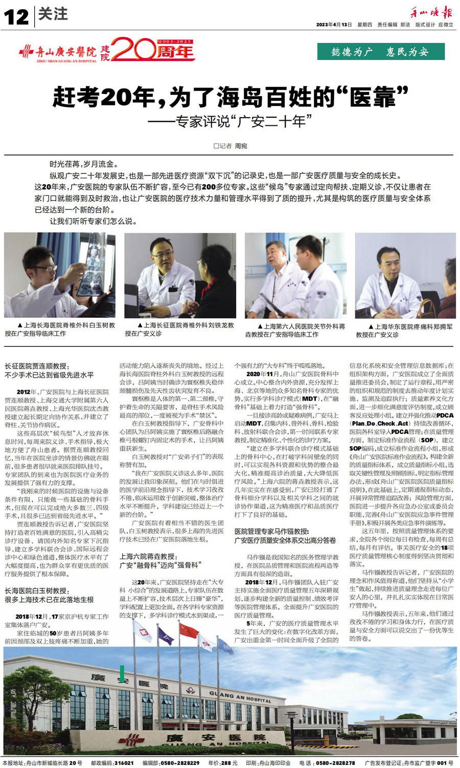 趕考20年,為了海島百姓的“醫(yī)靠” ——專家評(píng)說“廣安二十年”
