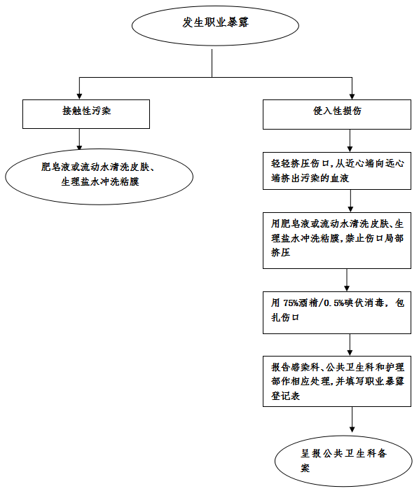 6、對于在產(chǎn)生、收集、貯存、運(yùn)輸、處置醫(yī)療廢物的過程中,必須防止醫(yī)療廢物直接接觸身體,一旦發(fā)生刺傷、擦傷等職業(yè)暴露時(shí)按職業(yè)暴露要求及時(shí)報(bào)告醫(yī)院感染管理科,并根據(jù)種類與受傷害程度,采取相應(yīng)應(yīng)急措施,跟蹤隨訪。