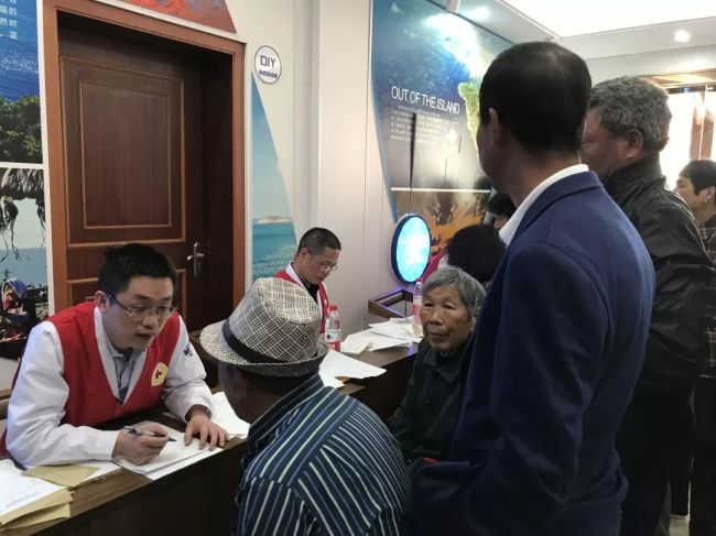 早上7點,廣安義診團隊準時到達此次義診的地點——嵊泗枸杞鄉(xiāng)三大王文化廣場,廣場上早已等滿了前來就診的當地居民。